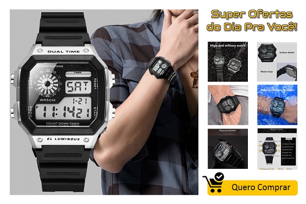 Relógio Digital Esporte Cronógrafo Luminoso WaterProof à Prova D’água.