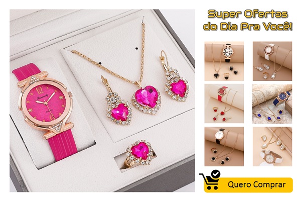 Relógio Feminino + Colar + Anel + Brincos Conjunto de Presente Especial.